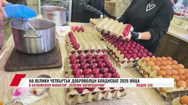 Гледай НА ВЕЛИКИ ЧЕТВЪРТЪК ДОБРОВОЛЦИ БОЯДИСВАТ 2026 ЯЙЦА В БАЧКОВСКИЯ МАНАСТИР "УСПЕНИЕ БОГОРОДИЧНО", видео качено от sarcevoditel, във Videoclip.bg - видео споделяне за всички българи!