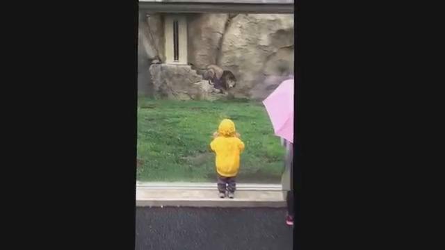Защо не трябва да обръщаме гръб на хищник! Ужасяващ момент Лъв се спуска към дете, блъска се в стъкло - Videoclip.bg