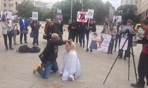 Вегани обръснаха косата на жена в знак на протест срещу изграждането на ферми за норки у нас.
