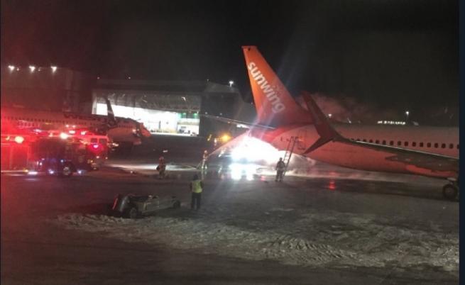 Два самолета се сблъскаха в петък на най-голямото канадско летище "Торонто Пиърсън". Самолет, оттеглящ се от изхода за пътници на терминал 3, се удари в пристигащ, предаде Ройтерс. Сблъсъкът между самолетите на компаниите "Сънуинг еърлайнс" и "Уестджет еърлайнс" довел до пожар, а 168 пътници бяха ев