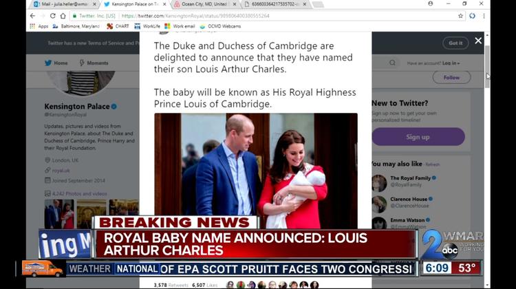 The new prince has a name. Britain's royal palace says the infant son of the Duke and Duchess of Cambridge has been named Louis Arthur Charles.