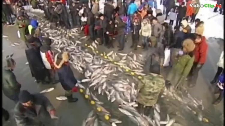 Новогодишната нощ 2015 в Северен Китай, езеро Чаган - Хиляди хора ловят риба в ледените води - Videoclip.bg