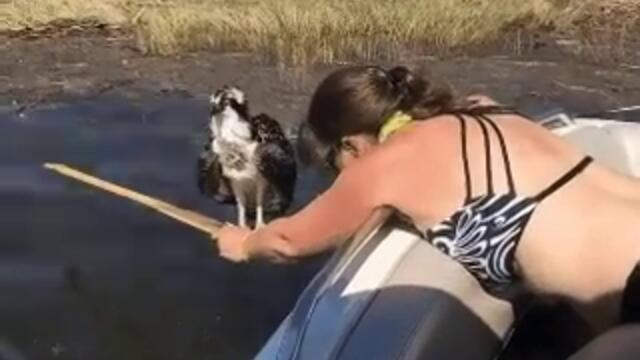 Жена спасява хищна птица без да се страхува за себе си! ...а птицата и се довери - Videoclip.bg