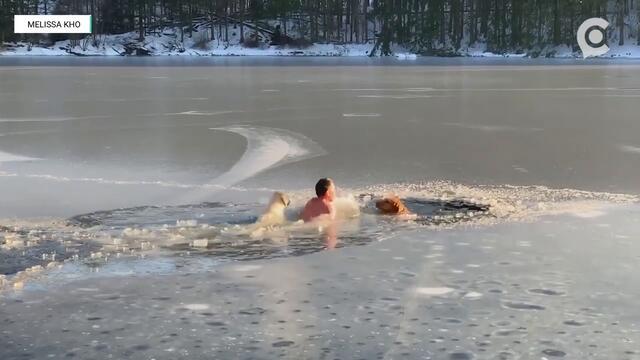 Мъж влезе в ледените води за да спаси две кучета (ВИДЕО) - Videoclip.bg