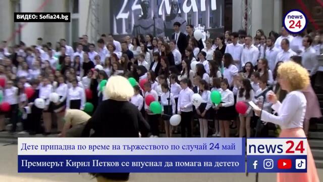 Премиерът Кирил Петков се впуснал да помага на дете от хора, което припаднало на 24 май... - Videoclip.bg
